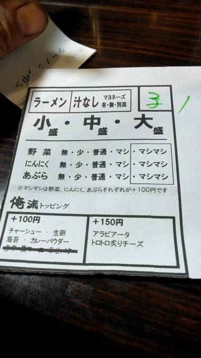 食券で購入し、二郎系おなじみのオプションを選択します。