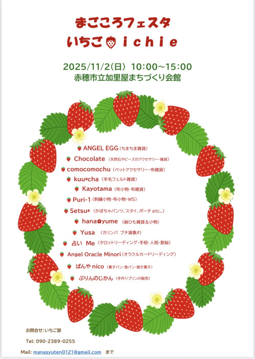 兵庫県赤穂市で開催される「まごころフェスタいちご🍓ichie」は”心も体もお腹も満たす”をテーマに、春と秋に年2回開催される人気イベントです。