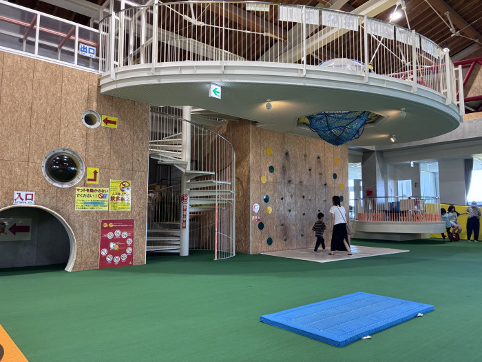 大きい子ども用スペースにはボルダリングができるエリアもあります。