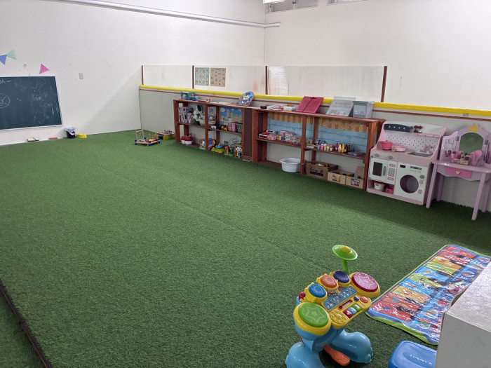 0歳児くらいの小さな赤ちゃんでも遊べるスペースがあって、おもちゃもたくさん。