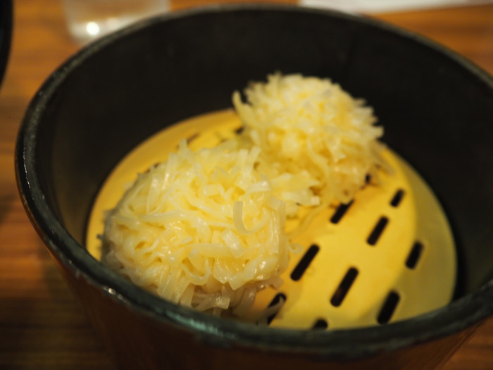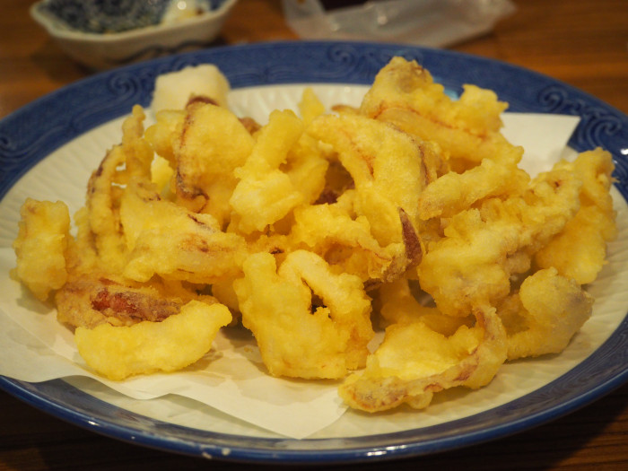 お刺身のゲソは一旦厨房に引き取られていき、あつあつの天ぷらになって帰ってきます。