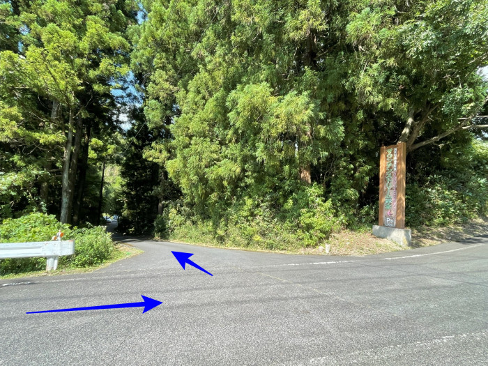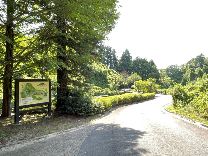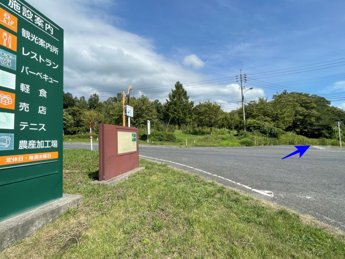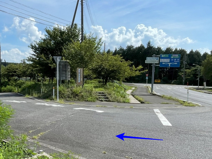 大山ガーデンプレイス前の広い道の向かいにある細い下り道を進みます。