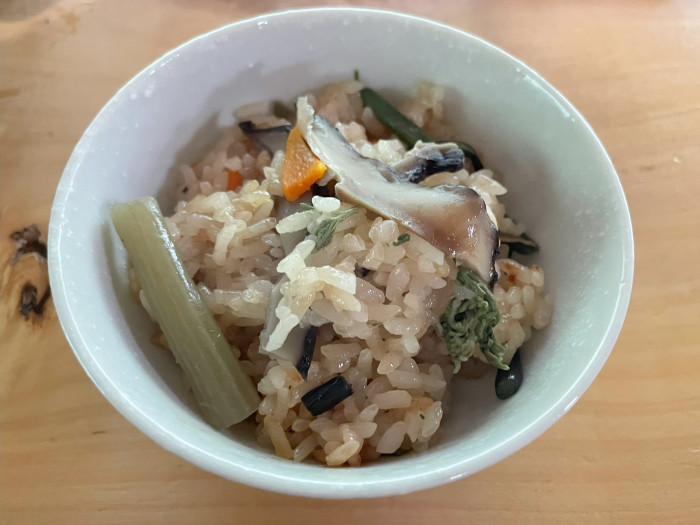 そして、さらに炊き込みご飯も追加しました。山菜がたっぷり入って甘めの味付けでおいしかったです。こちらもお米が上手に炊けていました。