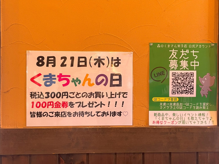 毎月のくまちゃんの日に買い物をすると金券がもらえます。