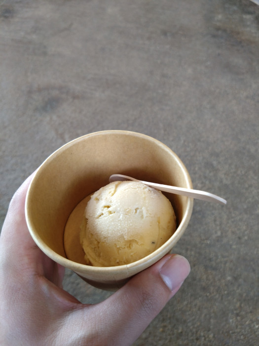 そして、ここの人気商品でもあるアイスクリームを食べました。写真はお芋のアイスで、チョコレートを好きなだけトッピングできるのですが、写真を撮るのを忘れてました。