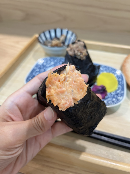 ランチメニューの主役は、もちろん「おにぎり」。お米は石川県産を使用し、ふんわりと結ばれたおにぎりは、手に取った瞬間からほろりとほぐれる絶妙な握り加減。具材は定番の鮭・梅・昆布のほか、季節限定のものも登場します。どれも素材の味を大切にしたやさしい塩加減で、何個でも食べられそうな軽やかさです。