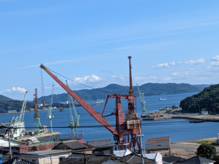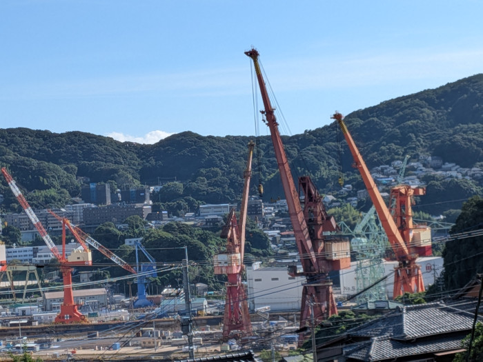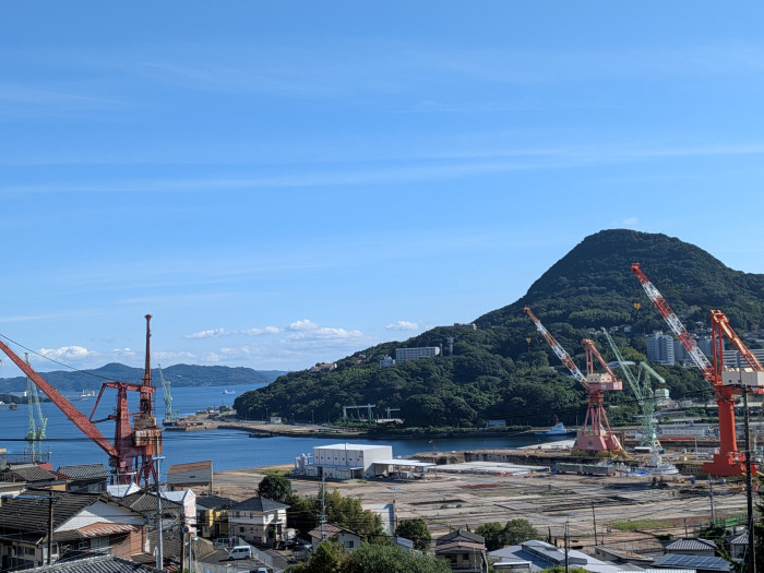 佐世保の港と大きなクレーンが映えますね。