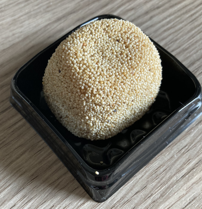 プチプチとしたけしの食感、もっちりとした餅の食べ応え、そしてなめらかな口溶けのこし餡。