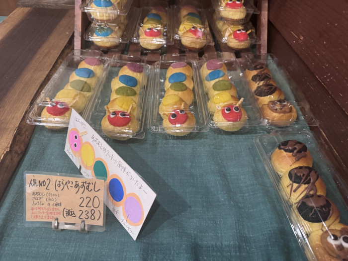 種類豊富なパンの中には、幸福パン、あこうクリームパン、はらぺこあおむし、春巻きの皮で包んだ焼きカレーパンなど、個性派パンがずらりとあり、どれにしようかワクワクがとまりません。