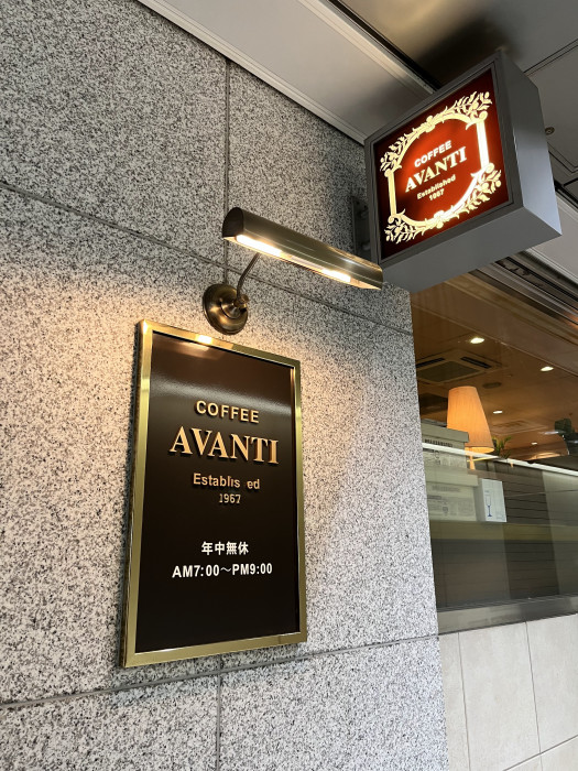 アバンテという名前のお店は、レトロな喫茶店というよりはおしゃれで洗練された佇まい。