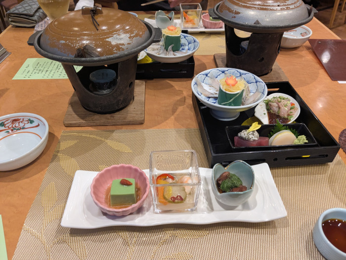 夕食は、鱈と茸のローストや3種類のお刺身などがあり山の幸も海の幸もどちらも食せます。