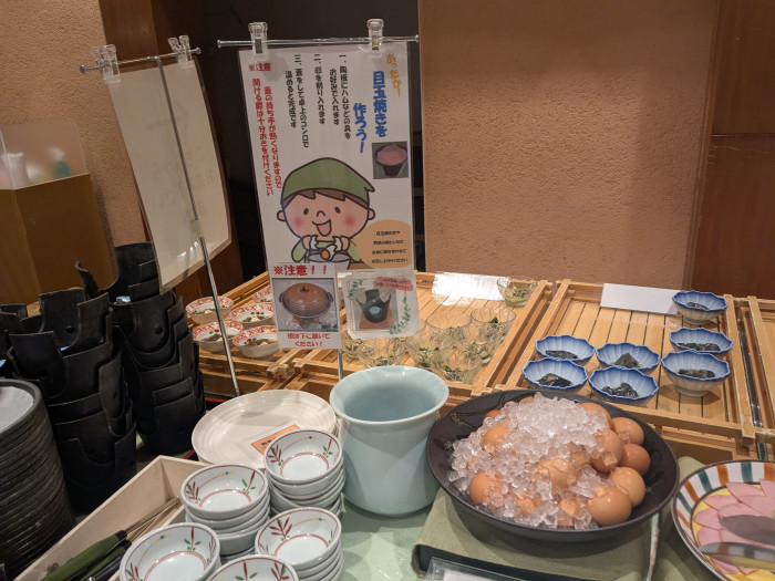 朝食は、自分で作れる目玉焼きプレートもありとても楽しいです。