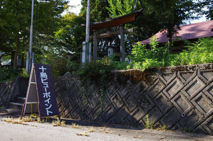 やがて、神社の前に「十島ビューポイント」と書かれた小さな看板を見つけました。