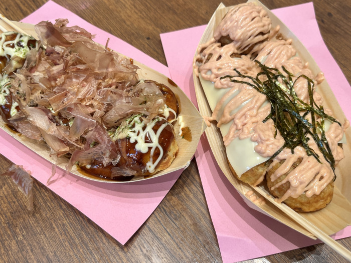 目移りするラインナップから、通常の「たこ焼(ソース)」と「明太マヨチーズ」を選びました。