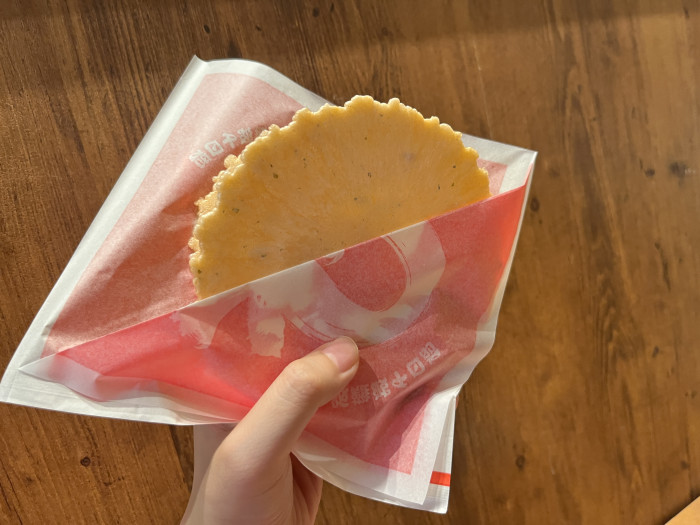 えびせんの間にたこ焼きをはさんだ「たこせん」も、300円(※2025年10月現在)という価格ながらパリッとした食感とたこ焼きのやわらかさのハーモニーが楽しく、ぜひ食べていただきたい味です。