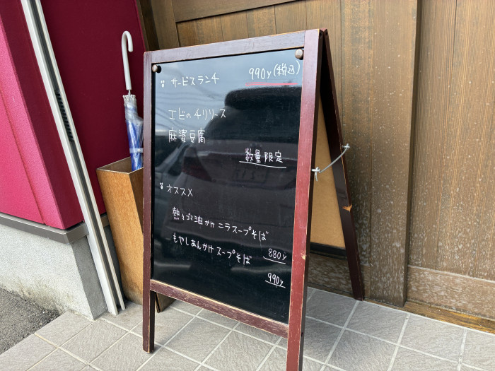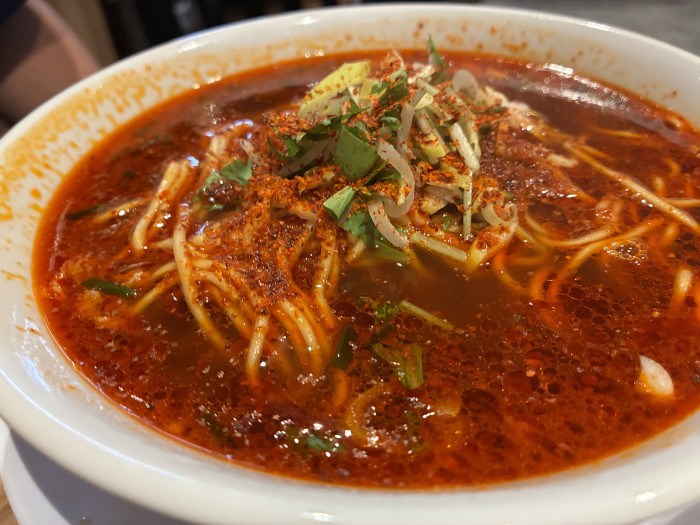 こちらは「辛麺」(990円)。辛さが4段階から選べ、こちらは2。ピリピリとした刺激は程よく、まさに“旨辛”。白ごまか黒ごま、さらにトッピングも選べる担々麺メニューも根強い人気のようです。でもやっぱり次回、まずは「ランチメニュー」を食べてみたい!中華定食に思いを馳せながら退店。行くならオープン時間に合わせて行くのが良さそうです。