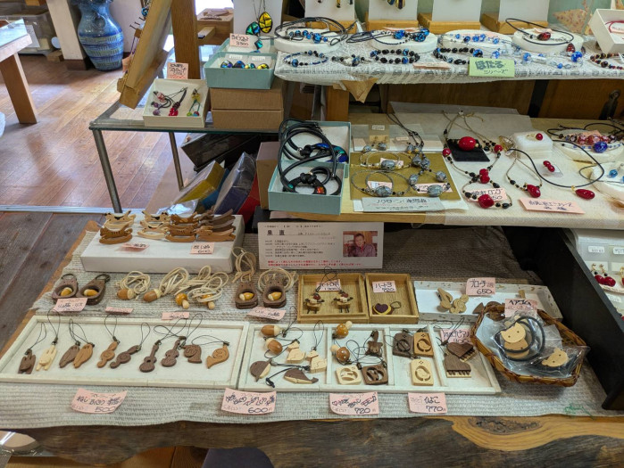 「作る屋」さんでは常時25人ほどの作家さんの作品を販売されているようで、寄せ木細工や櫛、木工のスプーンや箸などが並んでいます。