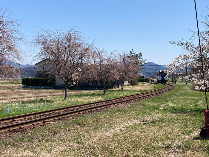 ちなみにこれは鮎川駅(〒015-0362秋田県由利本荘市東鮎川岡田)から撮影しております。電車は一時間に一本しか通りませんから、シャッターチャンスは待ちが必要ですよー(笑)