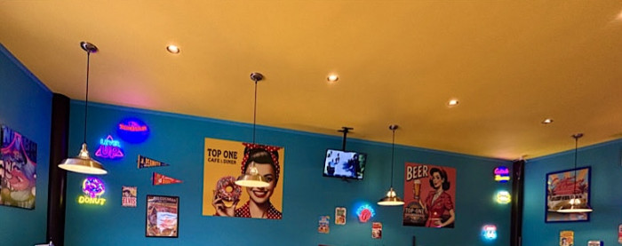 壁にはネオンライトやポスターが飾られていて、まるで海外のカフェに来たような気分になれます🇺🇸