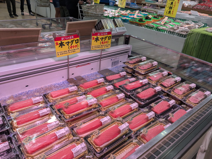 魚介類のコーナーには本マグロやいけすもあり、海鮮物の充実を感じます。