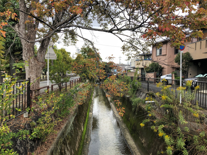 こちらは一乗寺あたりの疎水分線。ここから鴨川の支流、高野川へと向かっています。この分線は南から北へと流れているのですよね。水の流れとしては珍しい経路です。