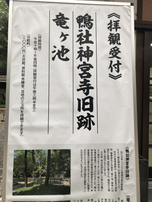 下鴨神社の糺の森には、かつて嵯峨天皇の勅願により創建された神宮寺があったそうです。明治の神仏分離により廃寺となりましたが、最近旧跡を拝観できるようになりました。