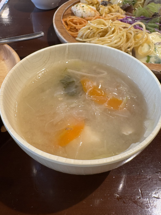 こちらのキムチスープは、あまりにも野菜がたっぷりだったので、味噌汁も気になりおかわりしてみました。