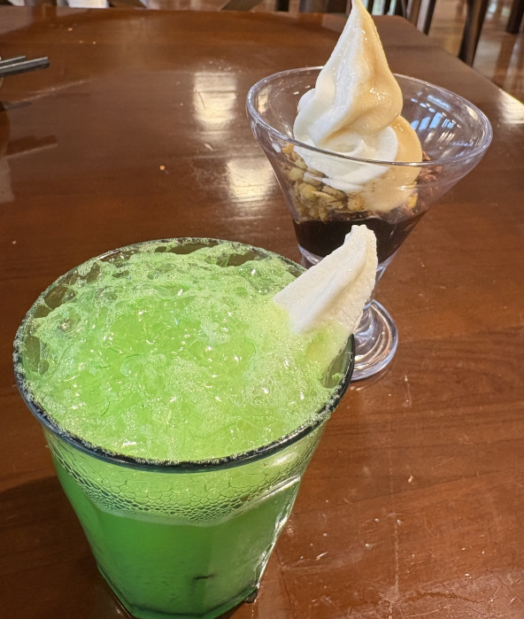 したかったのですが、お皿からソフトクリームを移し替える時にドボンとやってしまってこの有り様。