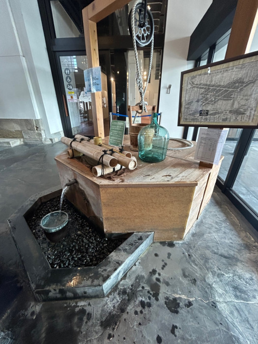 二か所目は、「名水市場湧太郎」という場所です。ここは酒蔵を改修した建物ですので、外観内装ともに古風で文化的な雰囲気を醸しています。