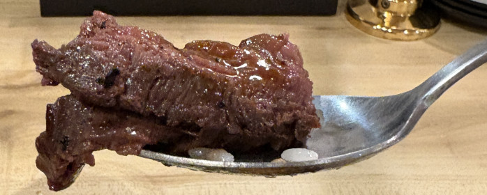 丼に盛られた厚切りの和牛ハラミは、ジューシーで旨味が豊か。特製のタレは肉との相性が抜群で、香ばしい香りと濃厚な味わいが食欲を刺激します。辛さは控えめで食べやすく、ご飯が進む一品です。