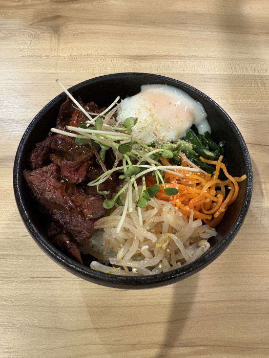 さらに、丼には温泉卵、もやし、人参などが彩りよく添えられ、ボリュームはありながら重すぎず、最後まで飽きずに楽しめます。今回は烏龍茶と一緒にいただきましたが、お酒のメニューも豊富なため、夜ご飯に軽く一杯添える楽しみ方も可能です。