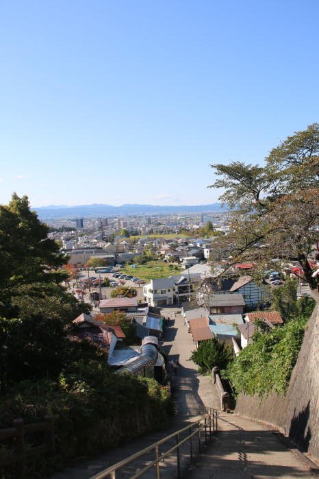 登りきった先には、眼下に会津の街並みが広がる美しい景色が待っていました。