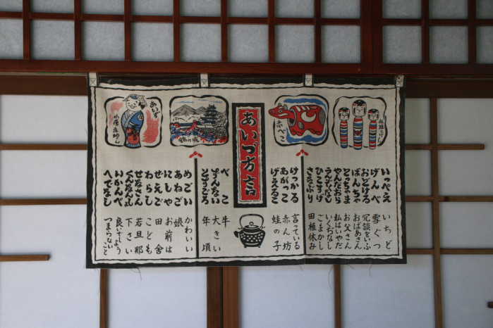 入口にはお土産屋さんが並び、赤べこグッズなど、会津らしい品々が並んでいました。