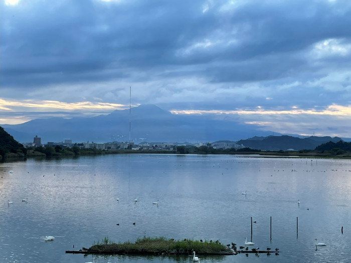 大山の頂上付近がうっすらと明るくなる頃、多くのコハクチョウはもう目覚めています。