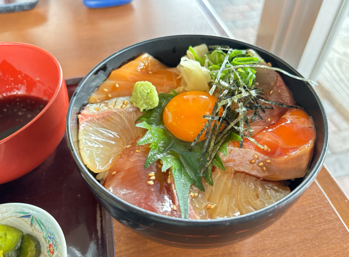 まずボリュームが凄まじくご飯が隠れるほどに盛られた海鮮たち!宇和島産の鯛を筆頭にサーモンやマグロなどが詰め込まれ、全てが新鮮で美味い!