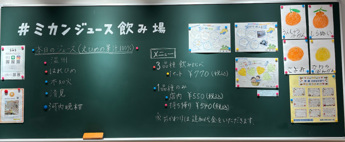 愛媛県産柑橘100%のストレートジュースが常時5種類ほど用意されており、産地ごとで甘さや香り、酸味など全て異なるのが面白いポイント!