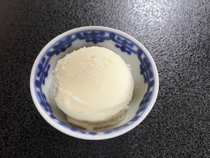 食後のデザートは、地元・加賀野菜の五郎島金時を使ったジェラート。やさしい甘さと滑らかな舌触りで、発酵ランチの余韻をゆっくり楽しめます。