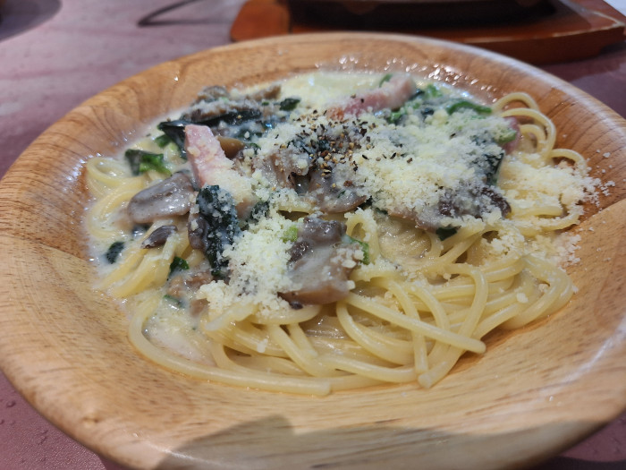 きのことベーコンのクリームパスタ、めちゃめちゃ美味しかったです。
