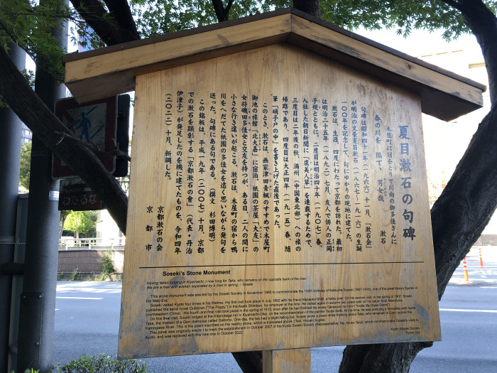 御池大橋の西側には、夏目漱石の句碑があります。漱石生誕100周年を記念して建てられたものだそうです。