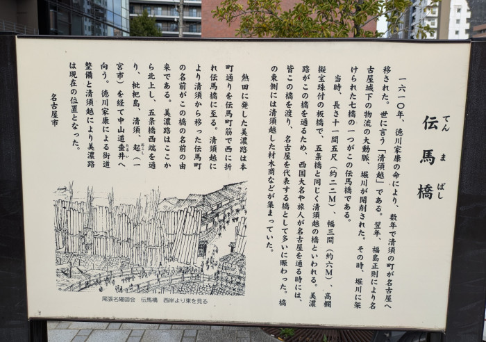 美濃路を通る旅人は、伝馬橋を渡りながら名古屋の町に入ったと、感慨深く悦に入ったことでしょう。