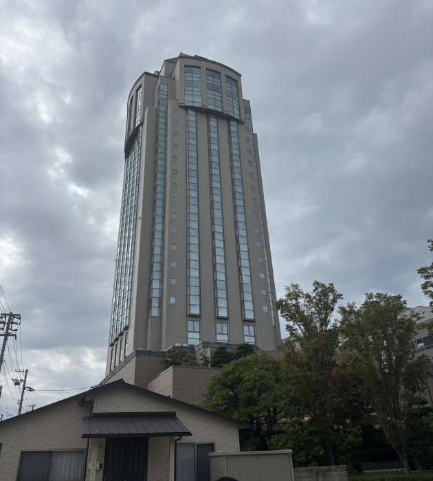 今治城に向かう途中、今治国際ホテルを通過。今治国際ホテルは愛媛県で最も高いビルで、高さは100m。今治では一際目立つ建物です。また、国際ホテルということもありこの辺では最も格式の高いホテルなんだとか。今度、もし泊まれたら泊まってみたいですね。