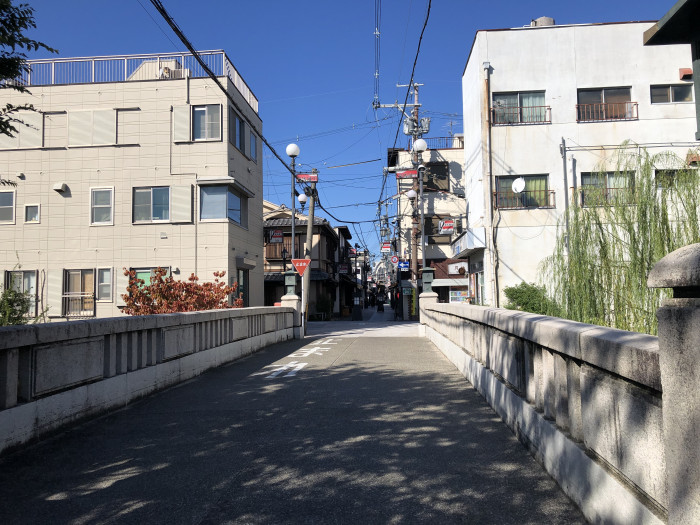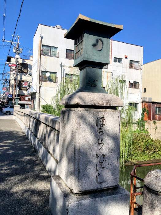 蓬莱橋は、坂本龍馬で有名な寺田屋のすぐそばにある橋です。坂本龍馬と妻のお龍が新婚旅行に旅立ったことで知られる、宇治川派流の濠川に架かっています。