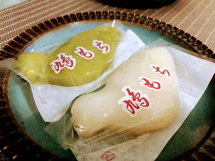鳩もちは、三宅八幡宮の神さまのお使いである鳩にちなんだお菓子です。