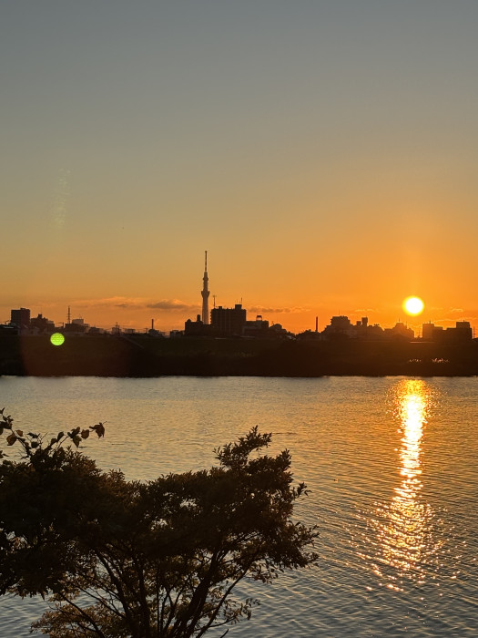 江戸川沿いの高台にある公園から東京スカイツリーや富士山が見えます。夕方に行くと夕日もセットで見ることができます。