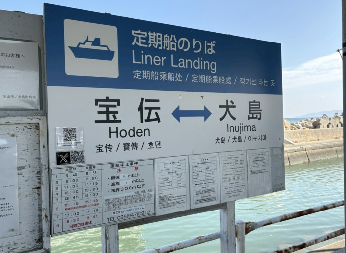 島までは、岡山市にある宝伝港からフェリーで約10分。片道400円です。