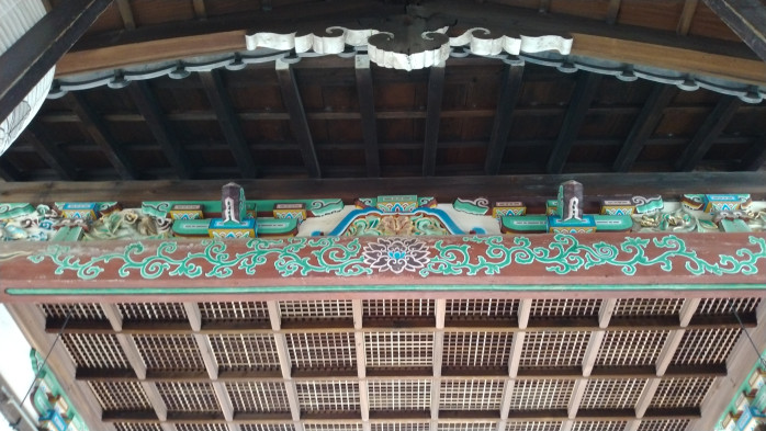 ちょうど境内をあちこちを修理中だったようで、資材や道具が点在していました。