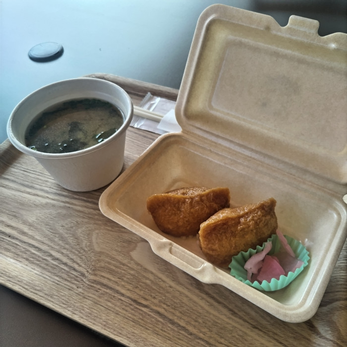 軽くいなり寿司とお味噌汁を注文して持ってあがりました。