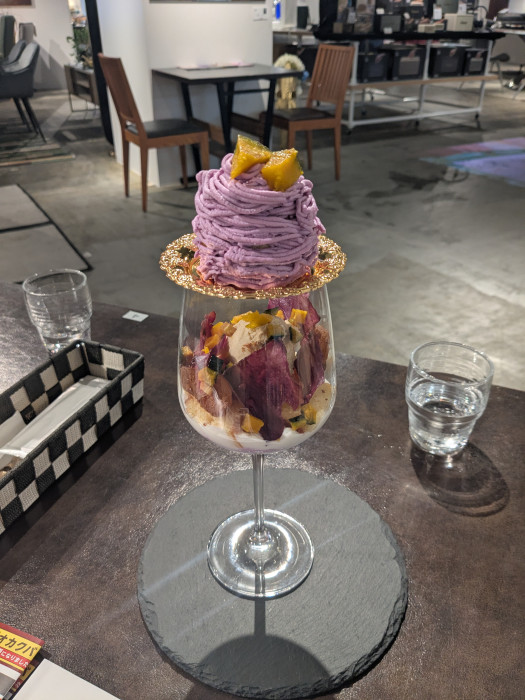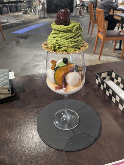 ちなみに食べるときは上のモンブランはテーブルにおろして、グラスと別々に食べます。
