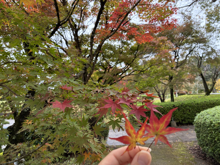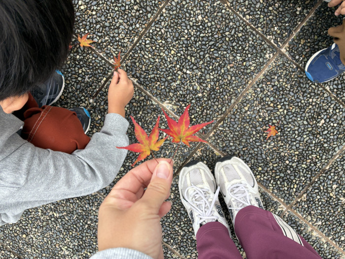 真っ赤な葉から、ほんのりとグラデーション調に色づいたものまで、さまざま。いくつか持ち帰り、家にあったクリアファイルを活用して子どもたちと“しおり”にしました。短い秋の葉と空気を一瞬切り取り、閉じ込めた1枚。いい記念になりました。
