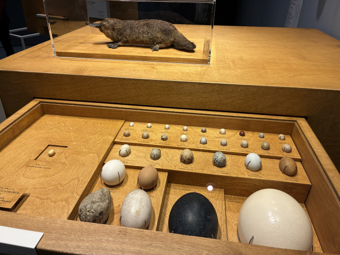 こちらはいろ~んな“たまご”。並べてあるので、サイズ感の違いがはっきりとわかり興味深かったです。思わずつるっと表面を撫でたくなりますが、展示物は全て接触禁止なのでご注意。